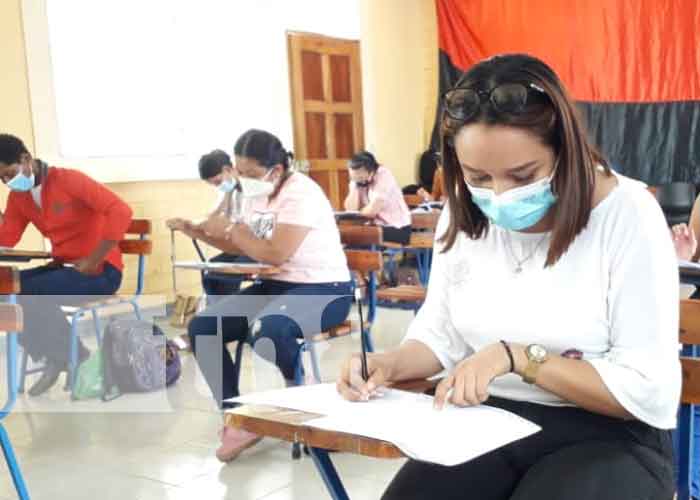 Fortaleciendo a la educación pública gratuita y de calidad, el Ministerio de Educación en el municipio de San Carlos realiza exámenes de administración. Los jóvenes exponen su conocimiento en la materia de inglés.