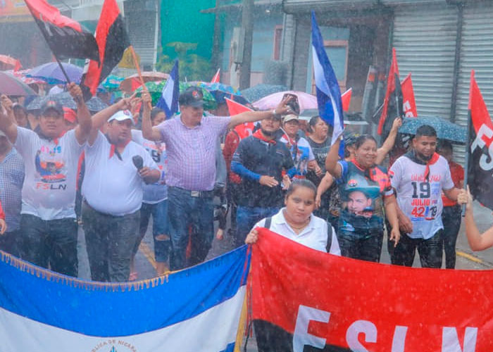 Los militantes caminaron bajo el agua, Francisco Salgado un colaborador historio del FSLN en Siuna; dijo que se hace honor a nuestros héroes y mártires porque ellos soñaron con ver una Nicaragua, llena de paz y grandes avances como las que se tienen hoy en día.