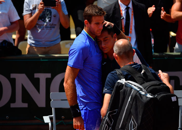 El argentino Juan Martín del Potro se clasificó hoy para la tercera ronda de Roland Garros después de que su rival, el español Nicolás Almagro se retirara por una lesión en la rodilla izquierda cuando estaban empatados a un set.