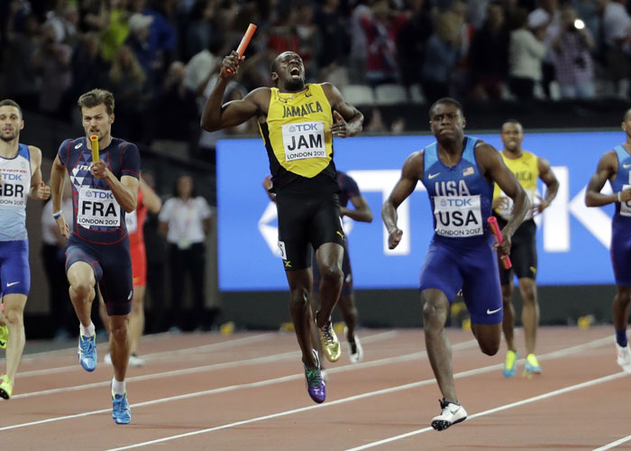 Un adiós doloroso para tal vez el atleta más grande de todos los tiempos, que se acercó lentamente a la meta acompañado por sus tres compañeros de relevos en la escena más dramática de los campeonatos del mundo.
