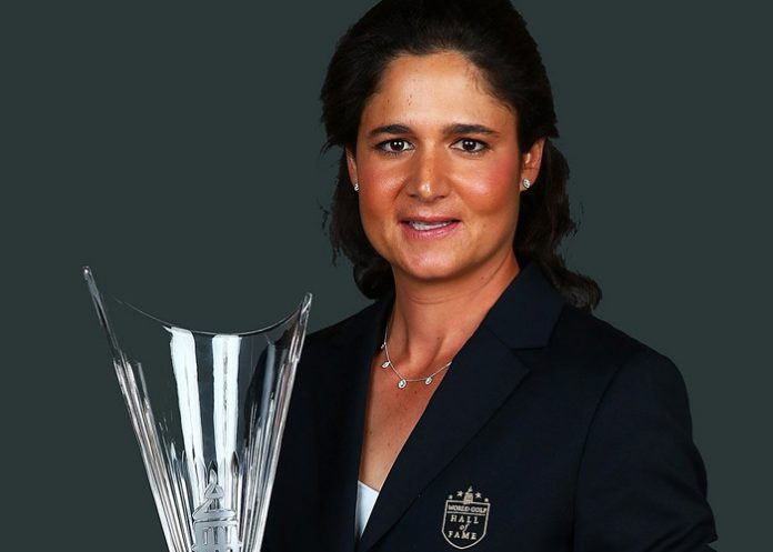 Luego, recordó que hace 10 años, su marido Andrés Conesa la llevó al Salón Mundial de la Fama del Golf en St. Augustine, Florida, y le dijo que quería estar en ese lugar con ella y sus futuros hijos, cuando se exhibiera su placa como integrante de ese club de leyendas.