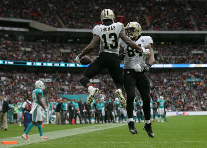 Michael Thomas tuvo una recepción anotadora en el tercer cuarto, Alvin Kamara añadió una en el último periodo y Will Lutz concretó dos de sus tres intentos de gol de campo por Nueva Orleans, que llegó a Londres el lunes y ganó el partido de menor puntaje que se haya celebrado en la capital inglesa.