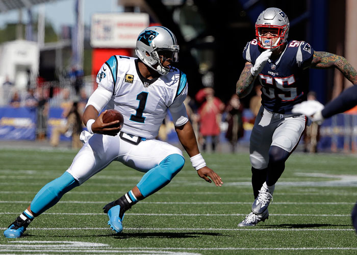 Newton completó 22 de 29 intentos para 316 yardas y una intercepción, aprovechando a una defensiva de Nueva Inglaterra que se ubica en el fondo de la NFL al permitir 461 yardas y 31,7 puntos por encuentro. Los Patriots forzaron un par de intercambios de balón, pero tuvieron problemas para contener a los receptores de los Panthers.