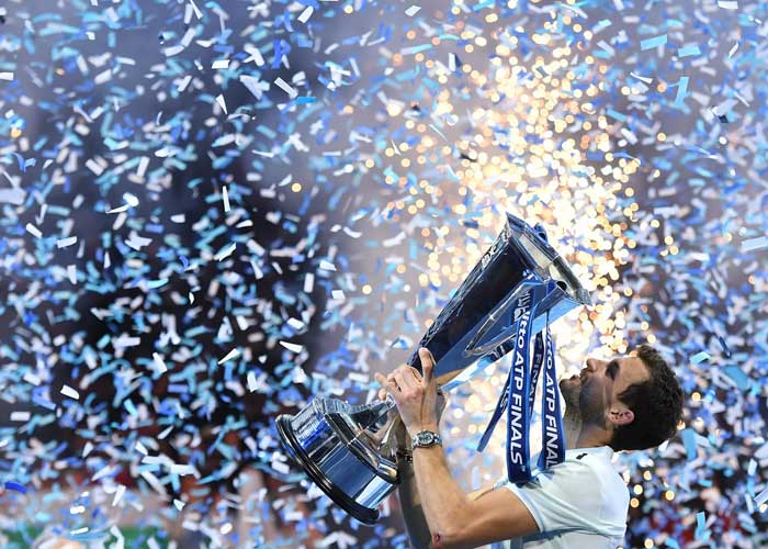 El búlgaro Grigor Dimitrov venció al belga David Goffin, por 7-5, 4-6 y 6-3, y se coronó campeón por primera vez de las Nitto Finales ATP en el O2 londinense, donde ganó el torneo más importante de su carrera.