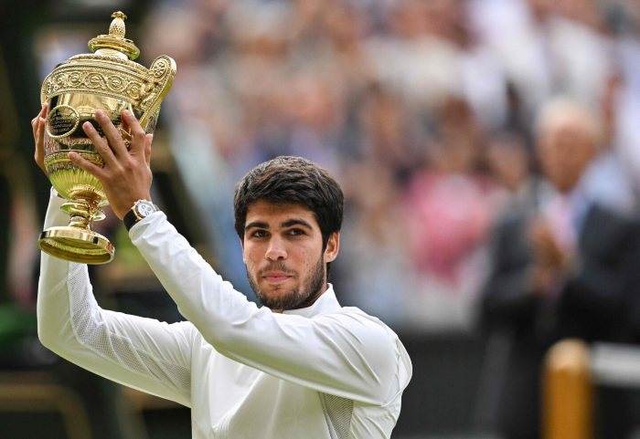 “Aún no me lo creo”, dijo Alcaraz, quien apenas disputaba su cuarto torneo en césped. “Jugar una final contra una leyenda de nuestro deporte es algo increíble”.