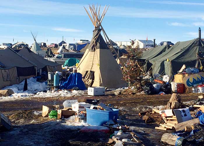 El campamento se encuentra en tierras federales en el sur de Dakota del Norte entre la Reserva Sioux Standing Rock y la ruta del oleoducto. Ha atraído en ciertos momentos a miles de personas, aunque se ha reducido a un par de cientos ahora que la batalla en torno al oleoducto se libra principalmente en las cortes.