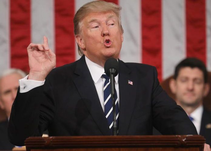 Enfrentado a una baja popularidad histórica y un inicio accidentado de su presidencia, Trump habló por una hora ante un hemiciclo repleto de miembros del gabinete, senadores, congresistas, magistrados, embajadores y generales.