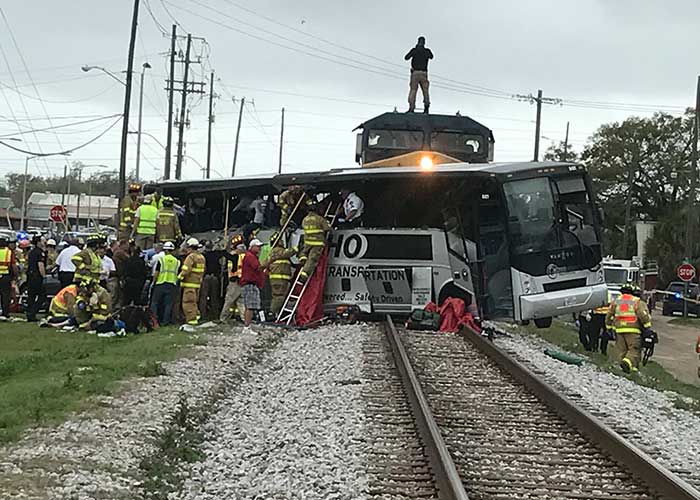 Al menos tres personas murieron, de acuerdo con el portavoz de la ciudad de Biloxi, Vincent Creel, quien agregó que los socorristas seguían rescatando heridos del autobús más de 30 minutos después de la colisión y sacaban a muchos por las ventanas.