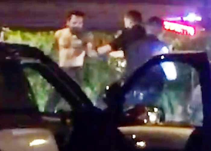 La policía dijo que intentó obligarlo a detenerse a las 11:15 de la noche y él lo hizo, después de una resistencia inicial, en el estacionamiento del centro comercial. Las autoridades dijeron que usaron la manguera para impedir que Pérez se prendiera fuego.