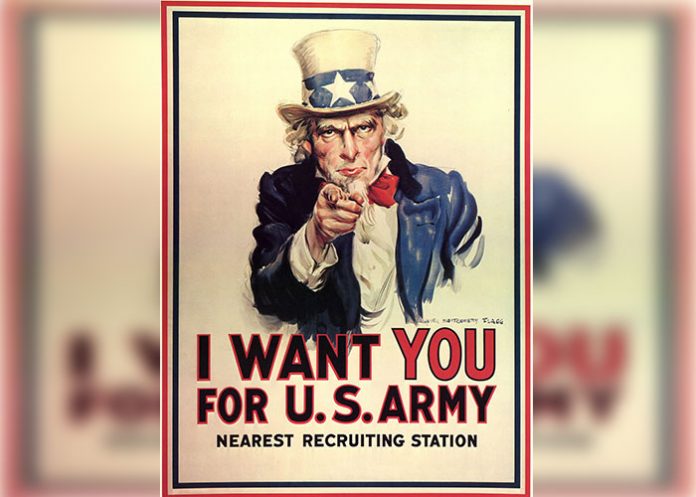 El patriota de perilla y pelo blanco, mirada penetrante, trajeado con los colores de la bandera estadounidense y con sombrero de copa alto adornado con las estrellas representativas de los estados del país apuntaba por primera vez hace un siglo, con su dedo índice, a los jóvenes para que se unieran al esfuerzo del país en la guerra.