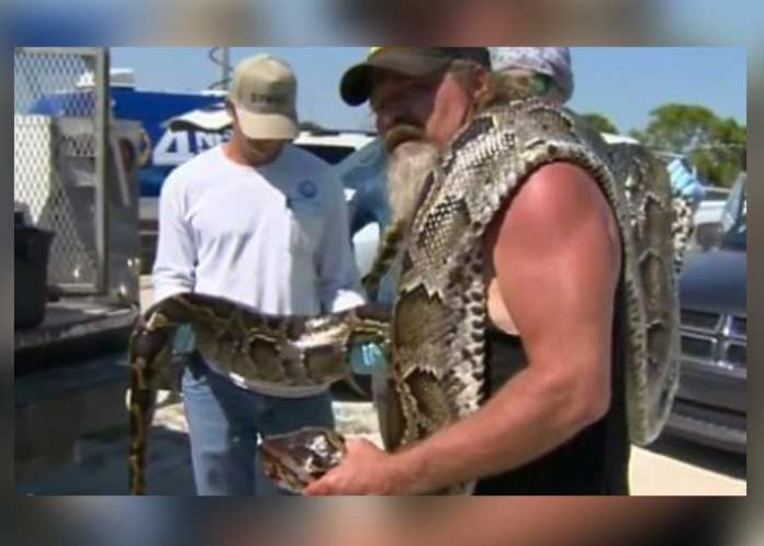 The Telegram & Gazette (http://bit.ly/2nAZGMW ) reportó el martes que personal en el Marriott Residence Inn en Worcester encontró la enorme serpiente la semana pasada y llamó a las autoridades, que llevaron al reptil a una tienda de mascotas.