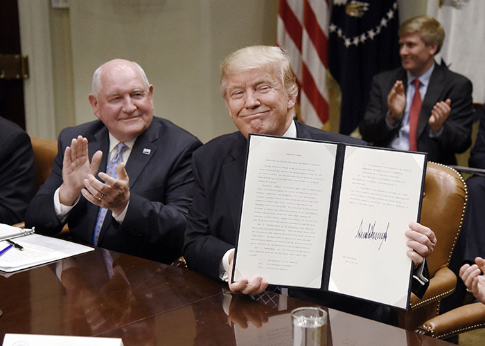 La orden establece un grupo de trabajo liderado por el recién confirmado secretario de Agricultura de EE.UU., Sonny Perdue, que tendrá un plazo de 180 días para "identificar cambios legislativos, regulatorios y políticos" en el sector agrícola del país.
