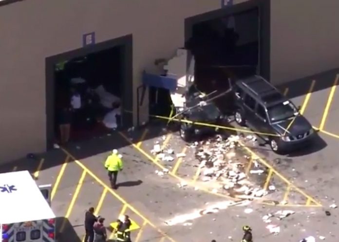 Un jeep Cherokee negro conducido por un empleado de la empresa atravesó el gran edificio a toda velocidad, embistiendo a varias personas.
