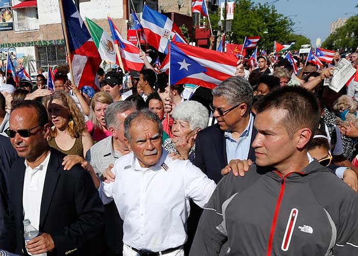 A pedido de varios congresistas, incluido el demócrata Luis Gutiérrez de Chicago, el entonces presidente Barack Obama conmutó la sentencia de López en enero. Un sonriente Gutiérrez caminó tomado del brazo del independentista durante el desfile del jueves.