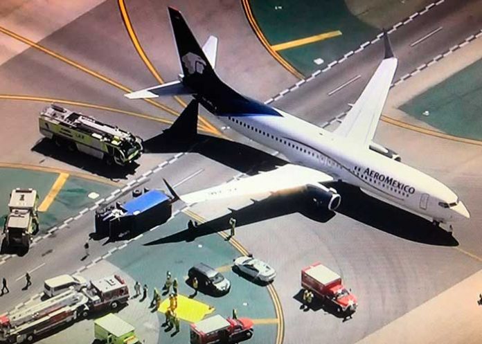El incidente ocurrió a las 2:27 pm el sábado cuando el vuelo 642 que partió de la Ciudad de México chocó con una camioneta de servicio público cerca de la pista 25R, según un portavoz del Departamento de Bomberos de Los Ángeles.