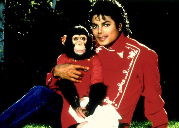 Nacido en 1983, "Bubbles" (Burbujas) fue la mascota que acompañó a Jackson en numerosas fotografías y videos musicales hasta que cumplió siete años y desde 2005 vive en el Centro para Grandes Simios.