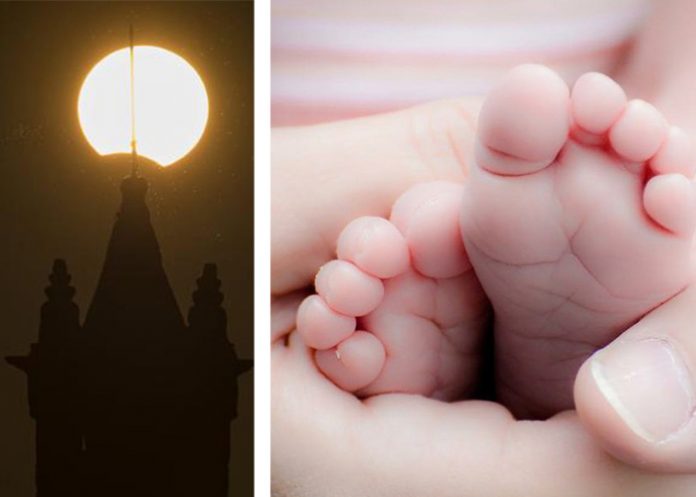 El bebé de nombre Eclipse nació a las 8:04 de la mañana, pesó 2,8 kilogramos y tenía su cabeza llena de cabello.