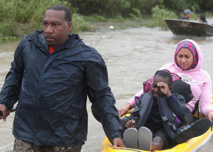 En el condado de Orange, en la frontera con el estado Luisiana, la Guardia Nacional continuaba evacuando a personas atascadas en las rutas, aún cubiertas de agua.