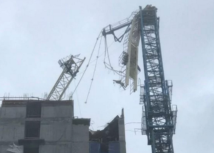 Las fotos muestran que el brazo de una grúa en la calle 3 se rompió y cayó sobre el techo de un edificio en una zona de la ciudad donde continuamente se están construyendo rascacielos con vista al mar.