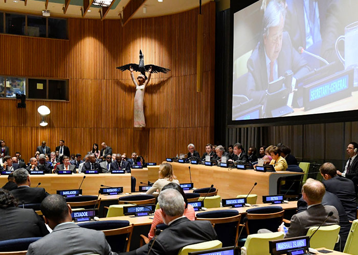 El secretario general de Naciones Unidas habló hoy en la apertura de la Asamblea General, en la que se estrena el presidente estadounidense, Donald Trump, al que ha criticado veladamente en el pasado por sus mensajes en materia de inmigración.