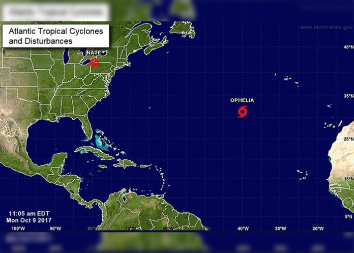 Se ha formado la Tormenta Tropical Ophelia a 1385Km al WSW de Las Azores. Vientos 65kmh pic.twitter.com/AwXhExdoEA