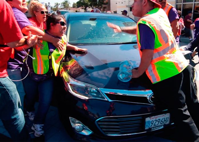 BREA, California, EE.UU. (AP) — Un hombre embistió con su automóvil una marcha en pro de los inmigrantes el jueves en el sur de California, y uno de los manifestantes saltó sobre el capó mientras el vehículo daba bandazos hasta que se detuvo. El conductor fue arrestado.