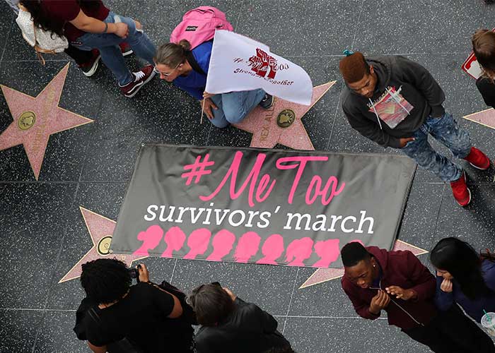 La protesta se realizó en el marco de una avalancha de crudas revelaciones realizadas por mujeres y hombres de casos de abuso sexual por parte de personas poderosas del mundo del espectáculo y más allá.
