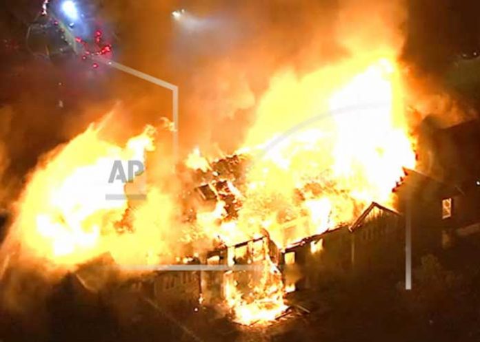 Las llamas se propagaron con rapidez a varios edificios y se veían llamas saliendo de tejados y ventanas de los inmuebles. Los residentes se vieron obligados a evacuar, saliendo al exterior en una noche fría. Videos tomados por un helicóptero de noticias mostraba docenas de personas esperando en línea junto a la calle, envueltos en mantas y muchos de ellos en sillas de ruedas.