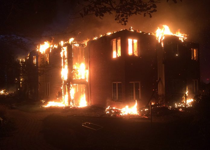 Las llamas se propagaron con rapidez a varios edificios y se veían llamas saliendo de tejados y ventanas de los inmuebles. Los residentes se vieron obligados a evacuar, saliendo al exterior en una noche fría con temperaturas entre los 4 y los 7 grados centígrados (entre 40 y 45 grados Fahrenheit).
