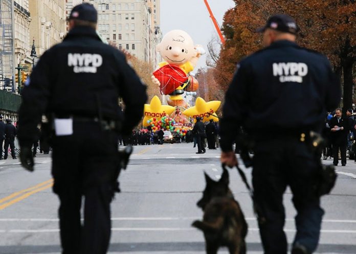 #EEUU ??| Agentes de la Policía ??vigilan la zona durante el 93º desfile?? anual de Acción de Gracias? en #NuevaYork, #EEUU, hoy, 23 de noviembre de 2017. pic.twitter.com/1I0beVH3Bf