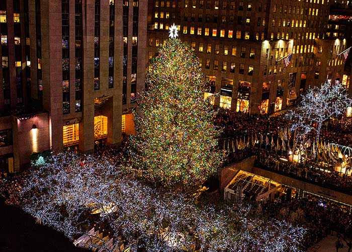NUEVA YORK (AP) — Multitudes de turistas y juerguistas atestaron el área central de Manhattan en una noche templada y bajo intensas medidas de seguridad para observar el encendido anual del Árbol de Navidad del Rockefeller Center.