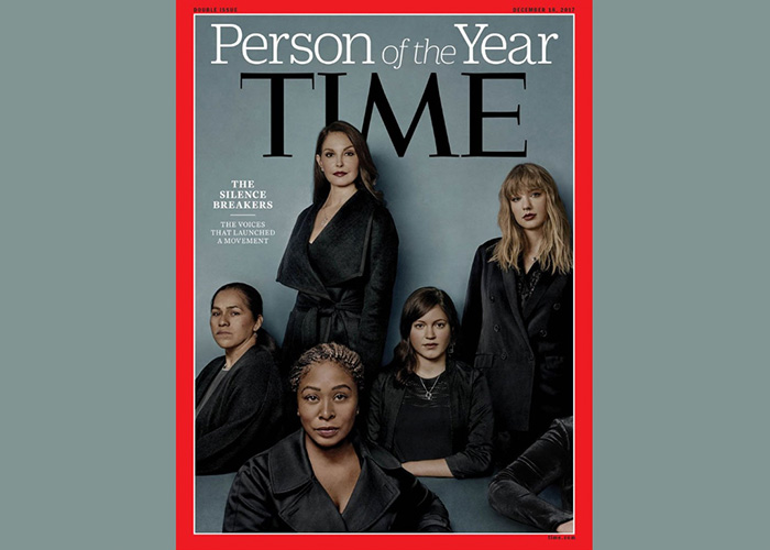 Numerosas mujeres _y algunos hombres_ se han pronunciado desde octubre sobre la conducta sexual inapropiada de decenas de hombres prominentes en el entretenimiento, los medios, los negocios y el deporte. Time elogió a aquellos que han prestado su "voz para destapar secretos, para trasladar las redes de murmullos a las redes sociales, impulsándonos a todos a dejar de aceptar lo inaceptable". La portada de la revista incluye a Ashley Judd, Taylor Swift y otras que dicen haber sido víctimas de acoso.