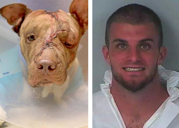 Brendan Evans, de 31 años y preso en una cárcel del condado de Broward, fue acusado de 17 delitos de "crueldad animal", uno por cada puñalada que le propinó al perro "Ollie".