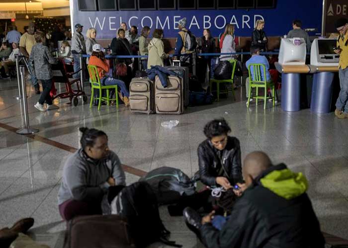 Miles de personas más quedaron bloqueadas en otros aeropuertos de Estados Unidos esperando la salida de su vuelo rumbo a Atlanta, uno de los puntos de tránsito más importantes del país.