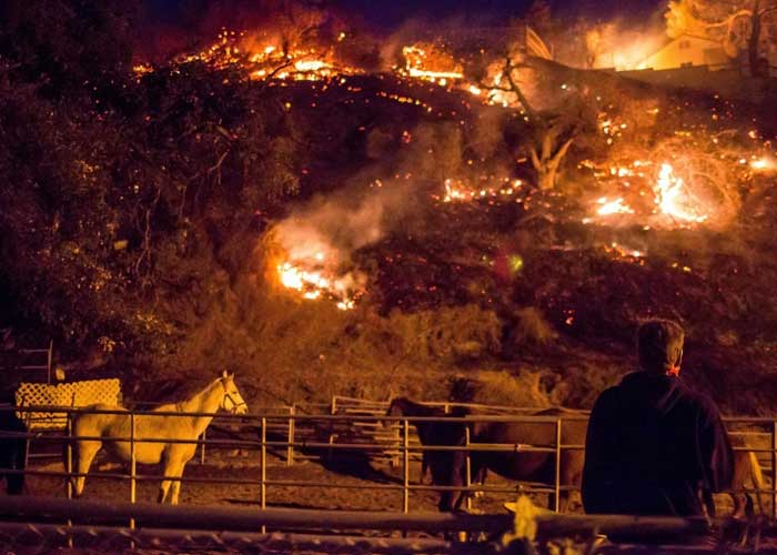 Cal Fire indicó que el área de mayor preocupación es la acomodada ciudad de Montecito, donde el sábado llovieron cenizas sobre sus secas colinas y mansiones de millones de dólares.