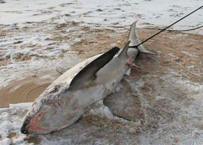 En total fueron hallados cuatro tiburones de la especie azotador congelados. Algunos estaban tan duros que no se les pudo hacer una autopsia inmediatamente. Otro no pudo ser rescatado por quedar atrapado en una zona de condiciones peligrosas. Algunos medios locales indicaron que los tiburones murieron como consecuencia de un “shock de frío”.