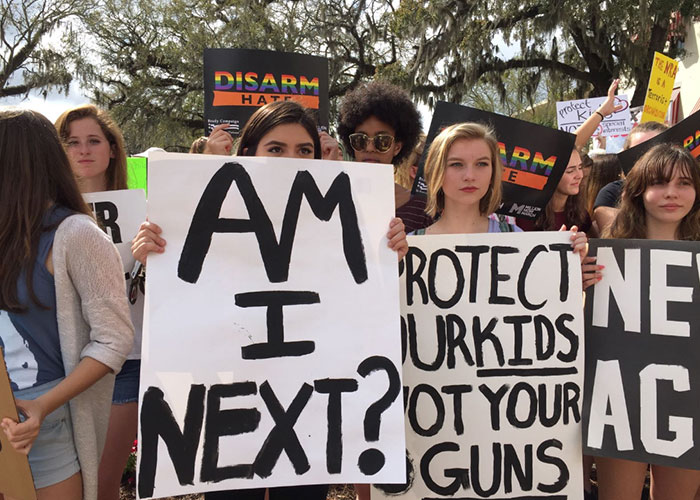 Con camiseta negras con los mensajes de "Parkland Strong" (Parkland fuerte) unos 3.000 alumnos, activistas y políticos se manifestaron en las inmediaciones del Legislativo en Tallahassee con carteles en los que se leía "No en vano los 17", "Legisladores tienen derecho a la seguridad, ¿por qué nosotros no?" y "Ya basta".