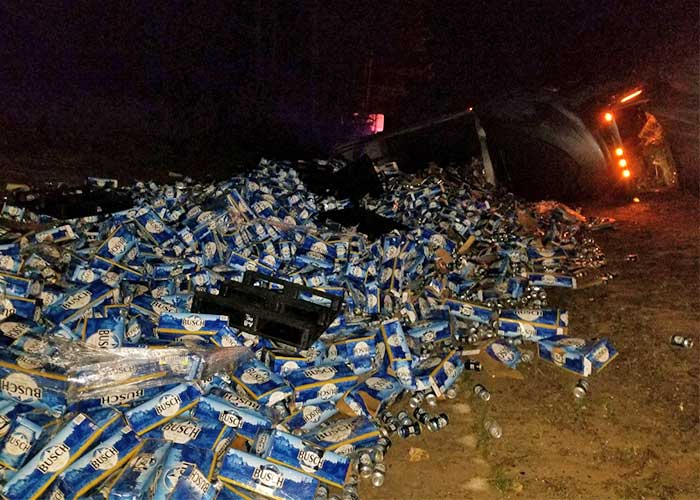 Un desventurado conductor de camión derramó aproximadamente 60.000 botellas de cerveza de la marca Busch en la autopista l-10 del estado de Florida, EE.UU., informa Wear.