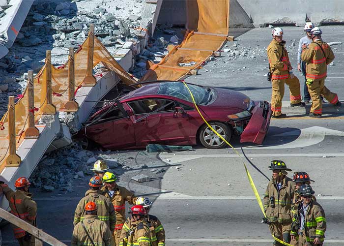 Un puente peatonal colapsó en la Universidad Internacional de Florida en Dade County, Miami, en un hecho que dejó a varias personas y autos atrapados bajo su estructura. #EEUU #EstadosUnidos #USA #UstedLoVio #Cuba #PorCuba pic.twitter.com/7GxaiP03FJ