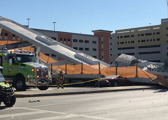 Así fue la caída del puente peatonal en la Universidad #Miami#bridge pic.twitter.com/ismja4l0vQ
