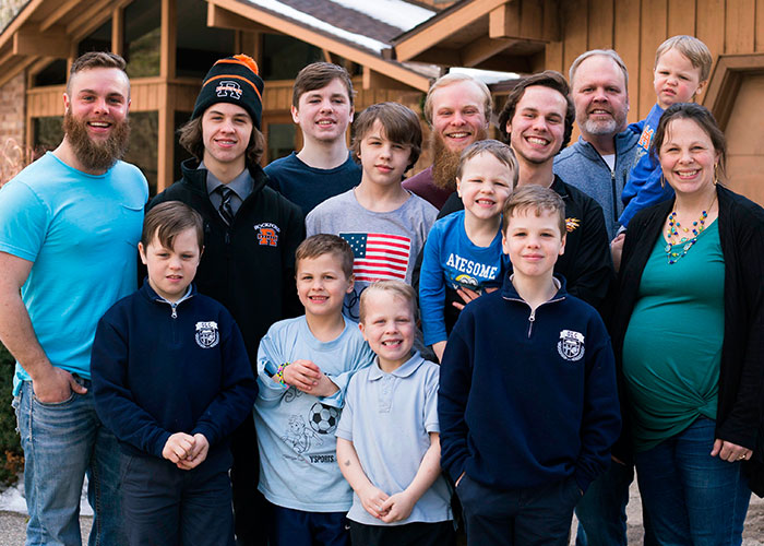 El primogénito, Tyler, nació cuando los Schwandt eran estudiantes en la Ferris State University de Big Rapids, Michigan, y luego siguieron Zach, Drew, Brandson, Tommy, Vinnie, Calvin, Gabe, Wesley, Charlie, Luke, Tucker, Francisco y el recién nacido.