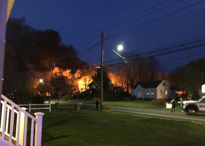 #BREAKING just got these pics from resident in the area of a reported house explosion during a police standoff in #NorthHaven @FOX61News pic.twitter.com/oMBKy1fGg7