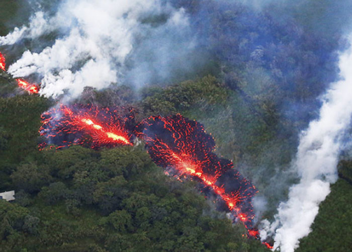 Las llamas azules por el consumo de gas metano son el más reciente fenómeno natural que despliega la erupción del volcán Kilauea en Hawái, publicó AP.
