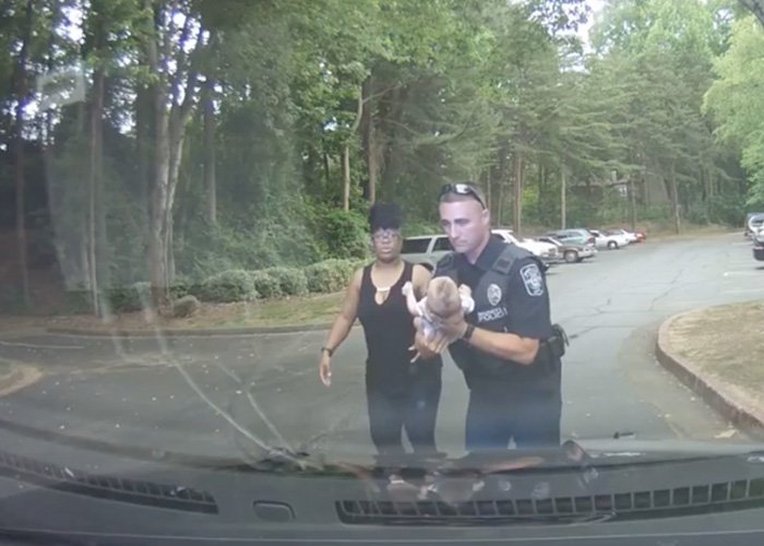 Este es el increíble momento en que un oficial de policía héroe salvó a una bebé de morir asfixiada.