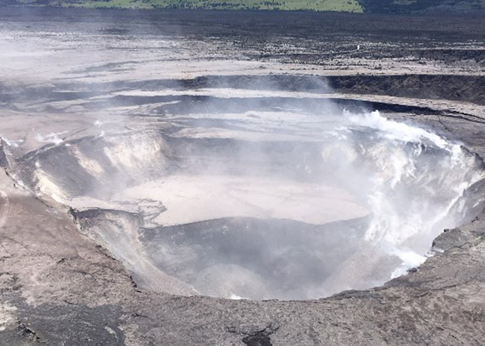 El cráter en cuestión, el Halemaumau, está ubicado en la cumbre del volcán, hasta la reciente erupción tenía un lago de lava en su interior y está considerado por la mitología hawaiana como el hogar de Pele, la diosa del fuego y los volcanes.