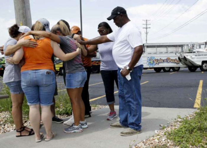 BRANSON, Missouri, EE.UU. (AP) – La ciudad turística de Branson, Misuri, se convirtió el viernes luego de que más de una docena de viajeros fallecieron al hundirse en un anfibio en un lago bajo un clima tormentoso, el accidente más letal de su tipo en casi dos décadas.