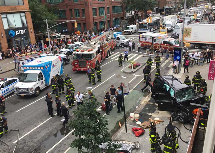 El automóvil, una camioneta de color negro, impactó entre un restaurante de comida coreana y una tienda de telefonía en la tradicional zona neoyorquina de Chelsea, sin que se conozcan de momento las causas.