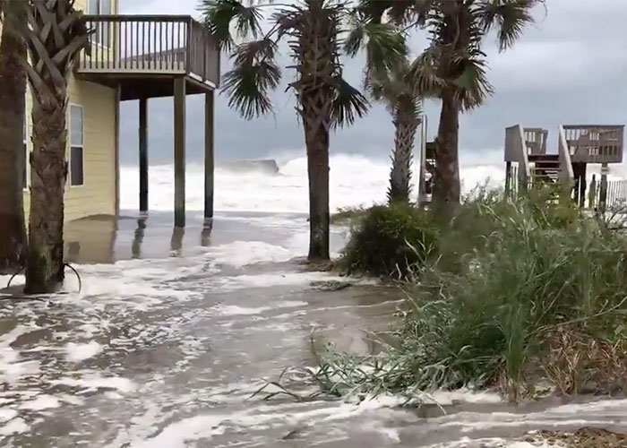 La peligrosa marejada ciclónica causará que áreas que son normalmente secas cerca de la costa "se inunden por un aumento del nivel" del mar que podría alcanzar entre 9 y 13 pies (2,7 y 4 metros de altura) desde Cabo Fear a Cabo Lookout, incluidos Neuse, Pamlico y Pungo, con posibles "grandes y destructoras olas", resaltaron los meteorólogos.