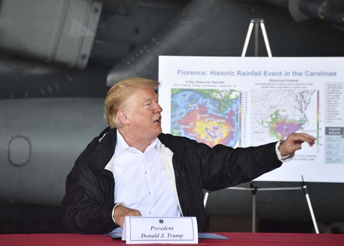 "Algunas de las inundaciones son épicas, es difícil creerlo. Por desgracia, el dinero (para reconstruir el estado) será mucho. Pero llegará tan rápido como lo necesiten", prometió el presidente, que subrayó que su Gobierno responderá "al 100 %" a las peticiones de los estados afectados por Florence.