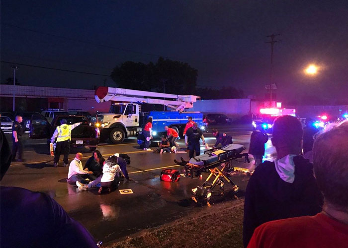 #ÚLTIMOMOMENTO Múltiples personas habrían sido atropelladas por un vehículo durante una manifestación por su lucha para aumentar el salario mínimo a $15 frente a un Mcdonald's en Flint, Michigan. Autoridades se encuentran investigando el incidente. pic.twitter.com/dMaL4OFXui